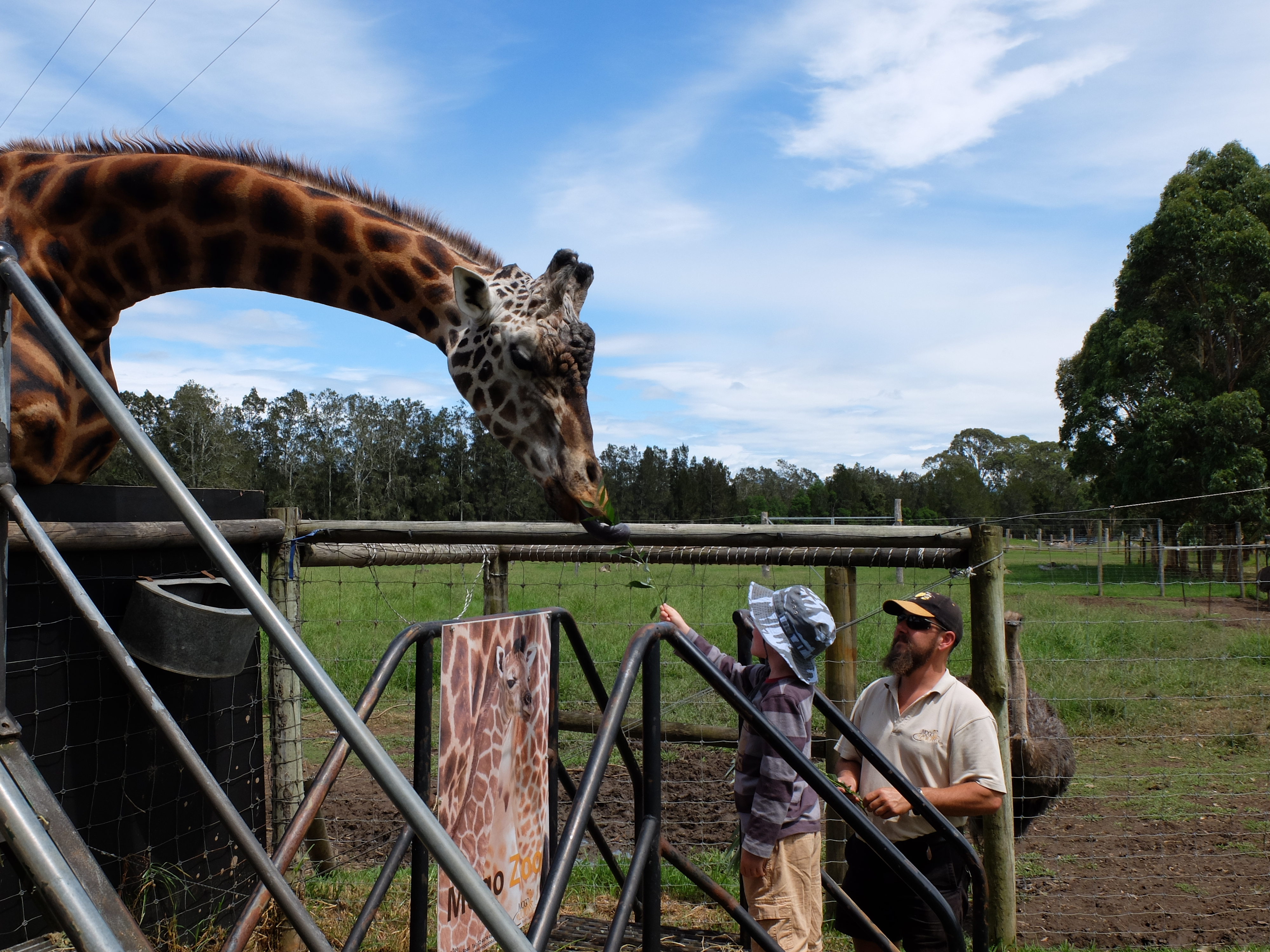 After settling into the site, getting some fresh seafood and a few waves at Horseshoe Bay (you can see the beach in the picture from our caravan window!) we took a day trip to Mogo and the Mogo Zoo.. Now this is a Zoo with a difference and one that for me has its priorities correct – it’s about the beauty of the wild animal, population sustainability and providing habitats that allows the animals to be nurtured but still remain wild. Sure the keepers feed the animals during the keeper talks, but they also assure us that if they wandered into the enclosure there is no doubt that they would be next on the menu… I’m not really a big fan of Zoo’s in general, but when they are set up for the benefit of the animals it’s easier to justify their place in the preservation and conservation world.