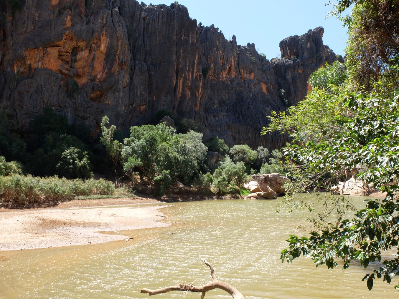 DSCF5672 ← Previous Next → Windjana Gorge – you can just start to see some of the crocs resting on the banks!